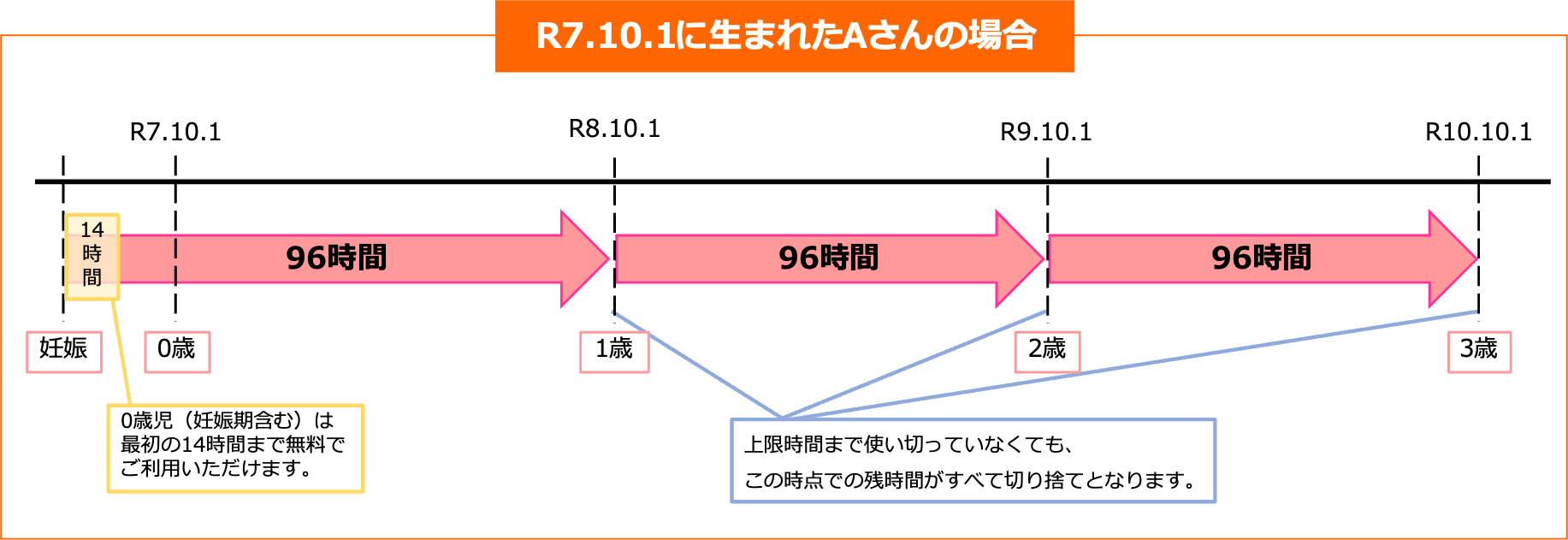 また、0歳児(妊娠期含む)の利用時間96時間の内、最初の14時間までは無料でご利用いただけます。